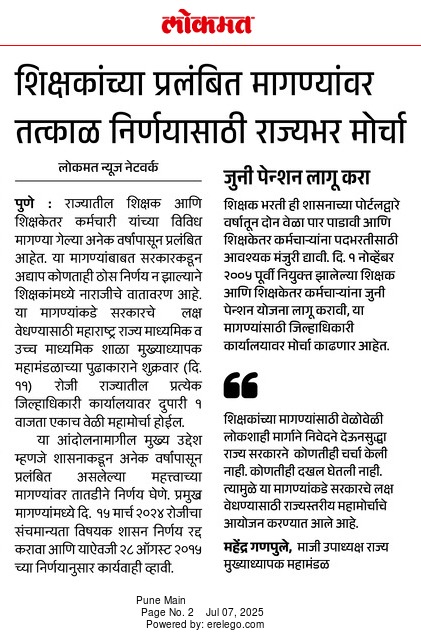 शालेय शिक्षण व क्रीडा विभाग संबंधित आजच्या शैक्षणिक बातम्या 07 July 2025 Today's Educational News शाळा, विद्यार्थी, शिक्षक व शैक्षणिक घडामोडींशी संबंधित दररोजच्या बातम्या. तसेच शिक्षक, पालक व विद्यार्थ्यांसाठी उपयुक्त आरोग्य, तंत्रज्ञान, अभ्यास विषयक टिप्स.